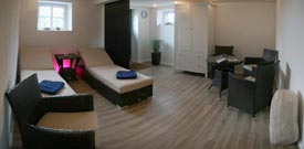KaminzimmerZur freien Nutzung steht das 36qm große Kaminzimmer im Erdgeschoss des Hinterhauses zur Verfügung. Bei dem knisternden Geräusch des brennenden Kaminholzes können Sie im gemütlichen Ambiente nach sportlicher Betätigung einen Abend mit Freunden verbringen. Sie können den Raum auch für Party's oder Familienfeiern für bis zu 20 Personen nutzen.