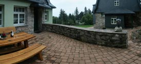 Terrasse und GartenDie großzügige Terrasse mit Holzsitzbänken lädt zum gemütlichen Verweilen an warmen Abenden im Freien ein. Dabei lässt sich die Ruhe bei einem Blick ins Grüne genießen.